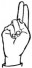 На ћирилици написано БОЖИДАР УЛЕМЕК састоји се из 13 слова [?]. Исписано ћириличном једноручном азбуком за глувонеме: